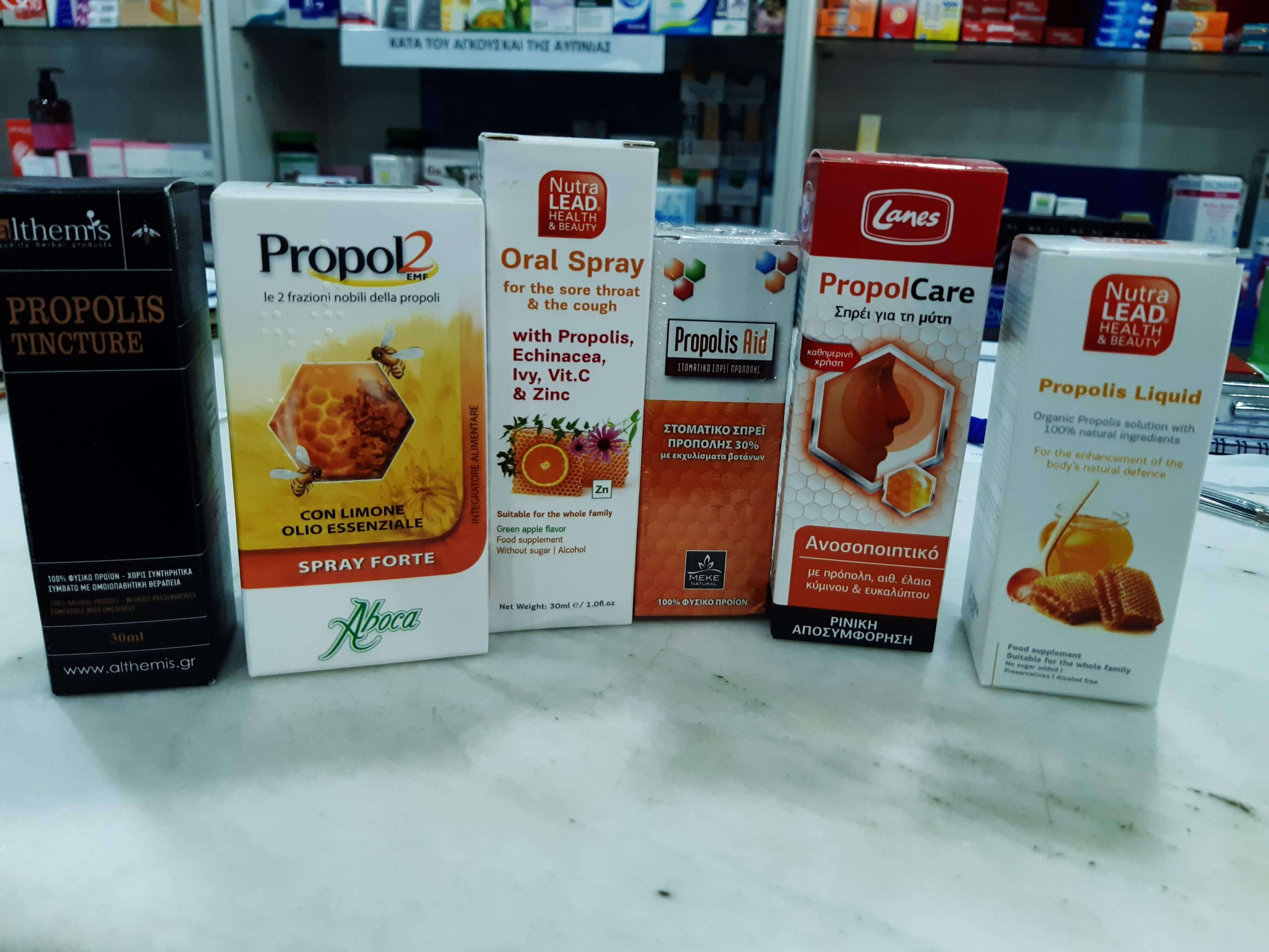 Στο φαρμακείο μας διαθέτουμε πολλά προϊόντα πρόπολης για να φροντίσετε την υγεία σας